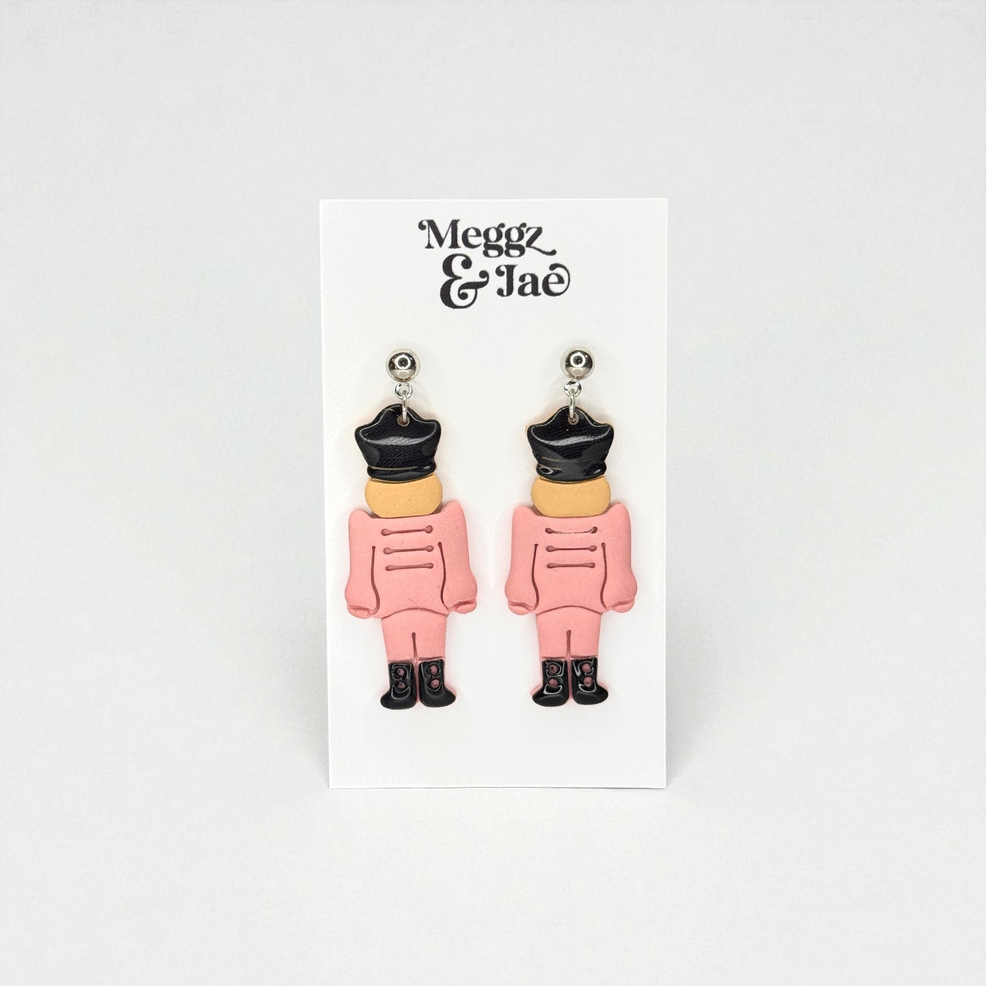 March into the holiday season in style with these adorable handmade pink nutcracker earrings! Crafted from polymer clay and detailed with black hats and boots, these festive soldiers add a playful yet elegant touch to your Christmas look. Lightweight, hypoallergenic, and full of personality — they’re the perfect statement piece for holiday parties or gifting.
