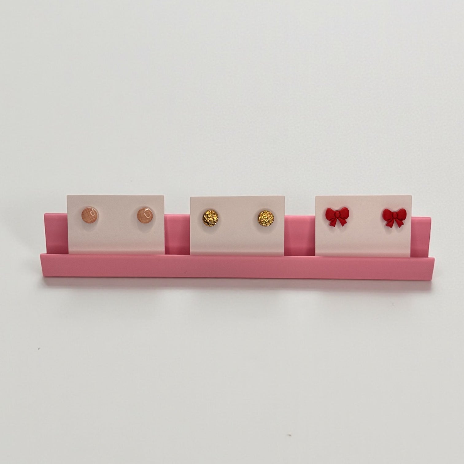 Show off your beautiful earrings in style with this chic pink jewelry card holder! Designed with makers and small shop owners in mind, this display stand holds multiple earring cards upright and perfectly spaced, making it ideal for product photography, craft fairs, boutique shelves, and TikTok/Instagram Lives.